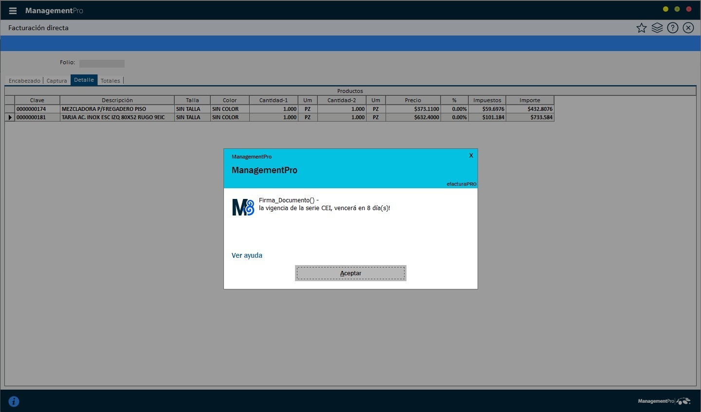 Ese mensaje se refiere a la vigencia del certificado digital que se utiliza para el firmado de facturas.