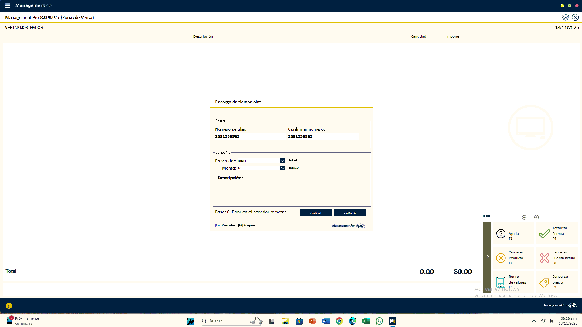 El mensaje "Paso: 6, Error en el servidor remoto: (500) Err... Ver mas
