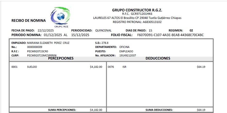 No. me refiero a que anteriormente voy a dejar la de Diciembre ahí estaba la deducción del ISR es que la del IMSS no la ... Ver mas