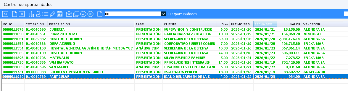 Tenemos las siguientes dudas sobre la pantalla de control de oportunidades: