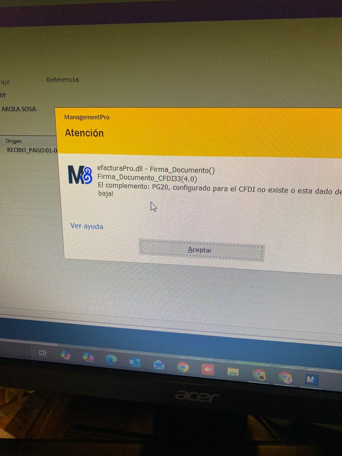 Hector Adan Gomez Contreras 4 d JUAN CARLOS ESCALANTE CRUZ ERP Error complemento de pago Buenas tardes. Sale el siguiente error al intentar firmar el complemento de pago. Me gusta Luis Alfredo Can Chan 4 d Hola Hector Este mensaje se presenta porque no se a incluido la versión 2.0 del complemento de pago, te proporciono ... Ver mas Me gusta Hector Adan Gomez Contreras 4 d Enterado. Muchas gracias. Me gusta