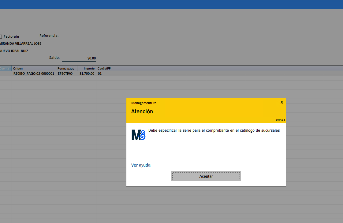 Hola no puedo timbrar un complemento de pago de la segunda sucursal, pero ya configure el comprobante en catalogos, series de comprobantes fiscales