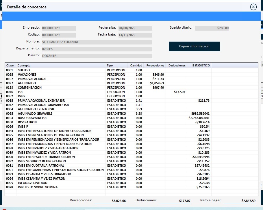 El sueldo no tiene un valor, lo cual es incorrecto, lo mismo que el imss. Si lo captura como incidencia, esos conceptos ... Ver mas