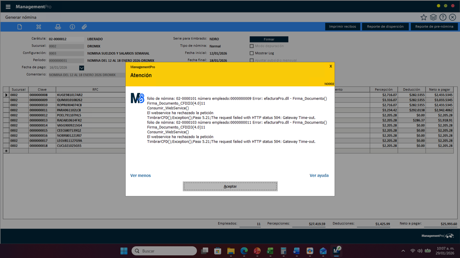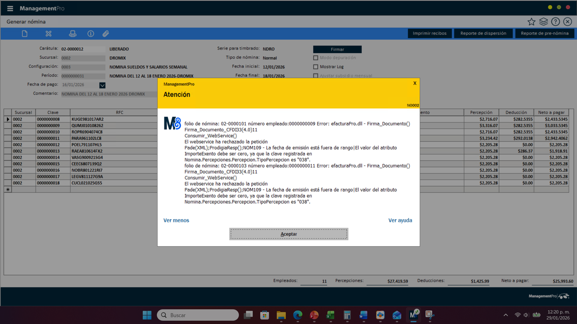 Hola me pueden ayudar no me deja timbrar la nomina de 2 empleados por este error. No se a que se refiere.